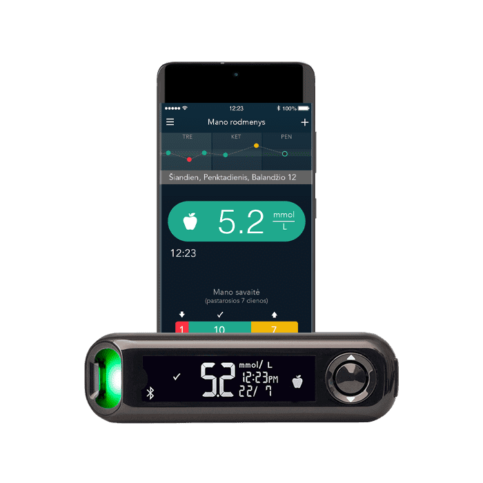 Paprasta nustatyti ir naudoti. Gaukite rezultatus per 5 sekundes. Pacientams, kurie nori paprasto naudoti matuoklio, lengvai sujungiamo su išmaniuoju telefonu ir padedančio sumaniau kontroliuoti diabetą.